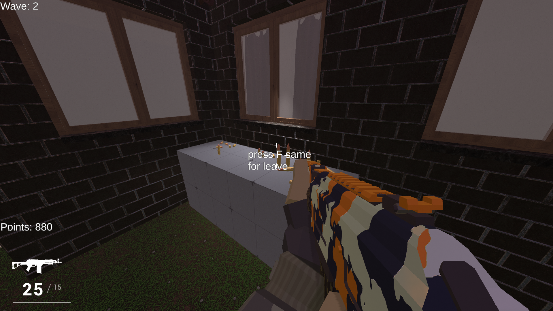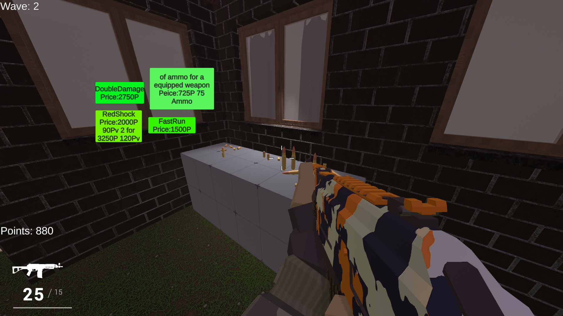 The Shop (F key): You can buy ammo for your AR and pistol when you run out.