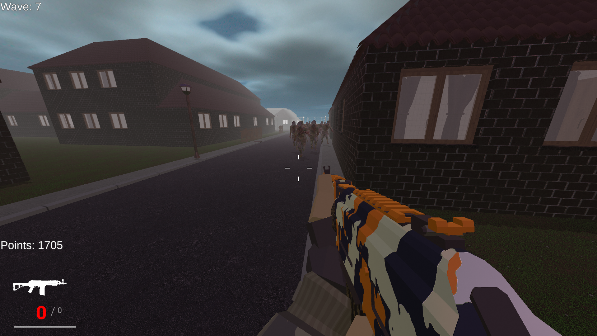 Salut tout le monde ! Voilà mon premier petit jeu de survie. C'est un shooter en vue FPS sur une map où tu dois gérer des vagues de zombies qui s'arrêtent jamais.